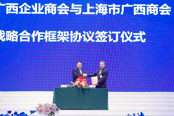 北京廣西企業商會與上海市廣西商會,現場簽署戰略合作框架協議,以促進兩會深度融合,相互協同。