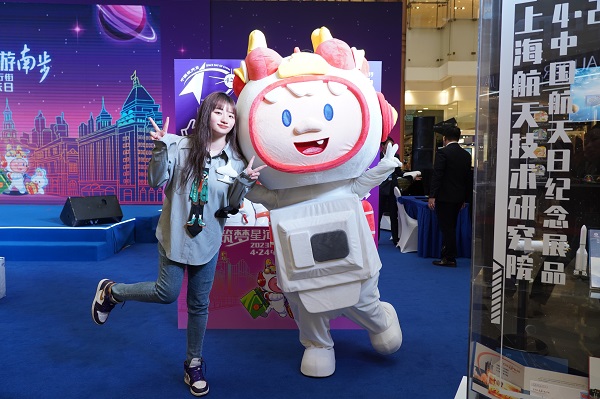 現場,大氣可愛的“宇宙龍”和造型逼真的宇航員美陳吸引眾多市民拍照打卡。更值得一提的是,此次活動,還以南京路“大不同”為主打,推出中國航天日專屬衍生品,包括徽章、紀念郵冊、聯名老字號禮盒等,讓市民在一睹筑夢九天風采的同時,還可帶回能吃能用能收藏的航天禮物,持續賦能南步街提升軟實力。