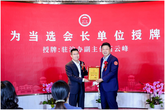 山東省人民政府駐上海辦事處副主任石云峰,棗莊市政協副主席、市工商聯主席李慧,棗莊市人民政府副秘書長岳曾波,分別為新當選的上海市棗莊商會會長、副會長、監事長授牌。