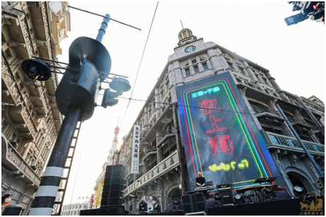 為響應發展“夜經濟”的號召,6月10日,上影集團旗下的上海影視樂園,利用自身特色,聯合藝術團隊,共同打造了首屆“夜上海!電影音樂節”,通過LED大屏、街區建筑投影以及現場音樂,將新媒體藝術與海派復古街景完美結合。