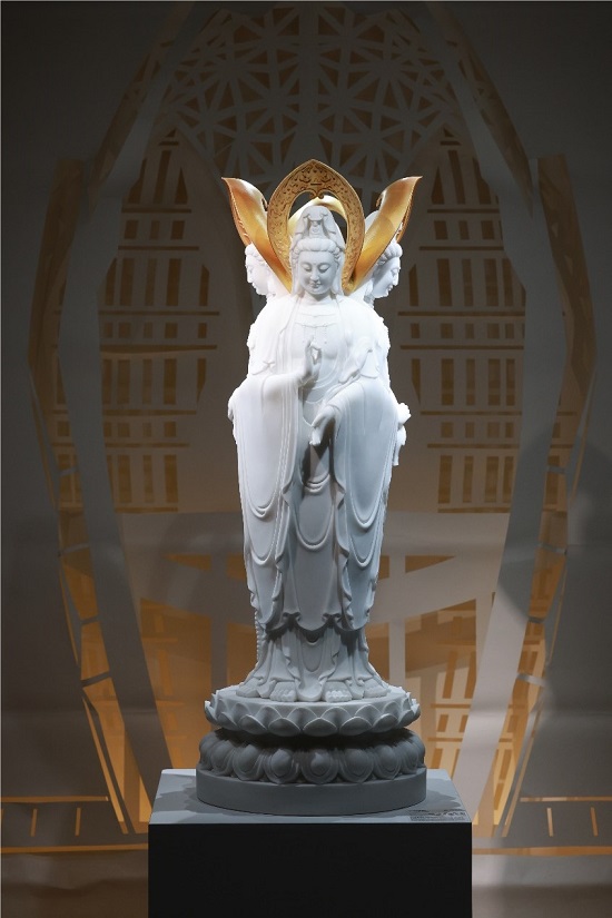展覽為廣大市民帶來為期1個月的造像藝術盛宴,其精選的作品是從夏水濤開始進行造像藝術以來的精品。本次展覽還是一場具有實驗性質的藝術場域行為秀,它融入了禪與公共藝術,將場、人、感受等多維角度,把成型的作品在環境內進行了二次創作,作品之間相映成輝,互為線索,構成了獨特的一場藝術體驗。作品《四面觀音像》坐落于江蘇省啟東市靈秀公園內,高18.6m通體由漢白玉雕刻而成,造型俊秀逸美,莊嚴慈悲,毗鄰法音寺,外罩蓮花閣,2022年8月在中國輕工業聯合會舉辦第二屆中國工藝美術博覽會上獲得“百鶴杯金鼎獎”。