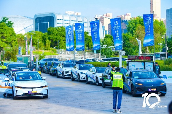 上午8時10分,主持人宣布發車儀式正式啟動。在入場式環節中,各參賽車輛陸續駛入展示區。其中包括有“中式豪華電動轎車”嵐圖追光、賽力斯汽車與華為聯合設計的高端智慧電動汽車產品AITO問界M5、“超感駕趣電動SUV”深藍S7以及由中國首個專注小型純電的汽車品牌東風納米帶來的納米BOX等。據悉,共有10個廠商的15款來自于國新能源汽車廠商的車型參與本屆賽事,無論參賽廠商規模、參賽車型數量,參賽車輛性能和科技含量,均再創新高!