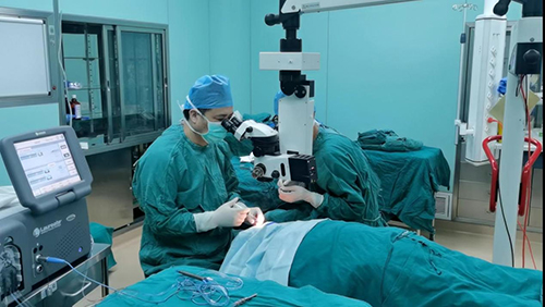 (上海第十人民醫院眼科汪朝陽教授正在吳江五院指導手術)