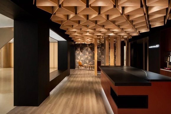 空間不僅僅是一個承載生活的容器,更將德系精工系統和秩序用設計語言進行了理性表達。頂部的木塊陣列,展現了當代結構藝術,體驗者身處其中仿若可與包豪斯展開隔空歷史對話。