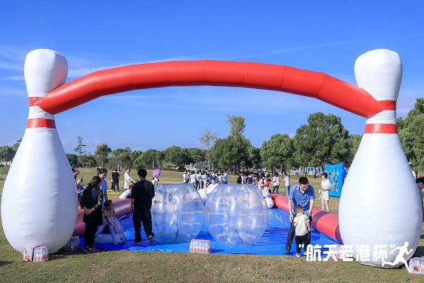 “航天老港杯”健身節活動是一場親子互動活動,以浦東紅窯的天然草坪為活動范圍,在互動區域內設置了7款不同的趣味互動體驗區,分別是袋鼠跳接力賽、同步跳躍、真人俄羅斯方塊、足球九宮格、趣味保齡球、歡樂抱抱球和獨步天下,每個項目都有其獨特的挑戰和樂趣,讓參賽選手們盡歡,也是家人一起盡歡。