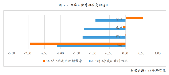數據顯示,三季度的住房租金,北上廣深四個一線城市中,上海是跌得最多的。其中,高端租金下跌最明顯,比如,前灘東方逸品去年月租金最高在18000元,現在已經跌到14000元以下,相當于比高峰期跌了25%;而月租5000元以下的房成交反而略有增加,分析認為是因為消費降級,租客選擇從高租金房轉去租較低價格的房了。