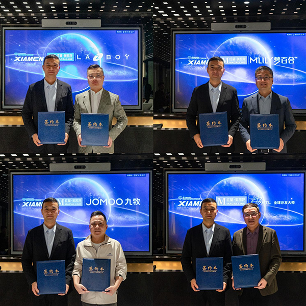 會上,LAZBOY樂至寶、夢百合、九牧、HTL全球沙發大師分別與紅星美凱龍就成為賽事官方供應商進行了簽約。(紅星美凱龍供圖)