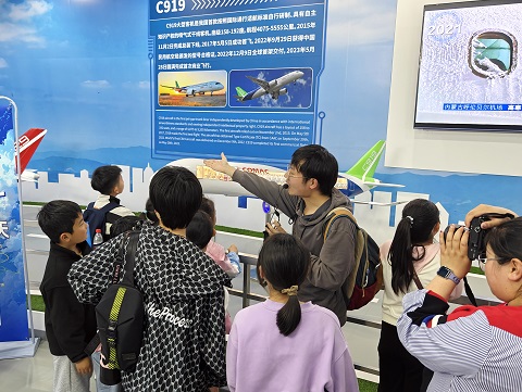 上海航宇科普中心特別辟出了航空互動體驗專區、3D觀影區等,開設有C919模擬器、神州動感返回艙等多項專業互動設備,不少親子家庭齊上陣,感受模擬飛行駕駛的樂趣,過足航空癮。