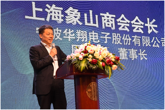 上海象山商會會長、寧波華翔電子股份有限公司董事長周曉峰,做了脫稿發言,他介紹了航空公司銷售機票的經驗,希望企業家們挖掘市場潛力,用好身邊資源,吃透市場。