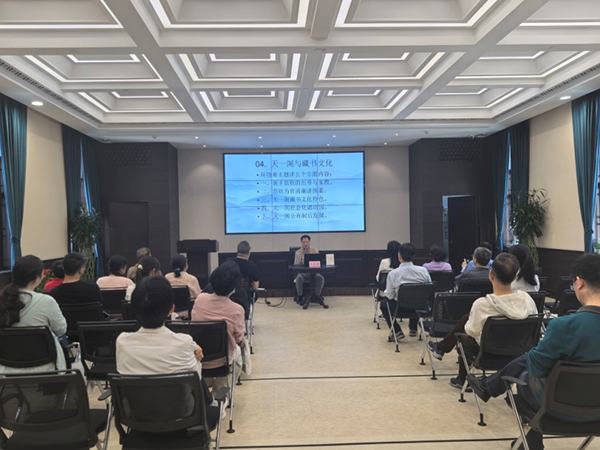本期講座的主題是“天一閣與藏書文化”,邀請原天一閣博物院研究館員、寧波市收藏家協會理事、副秘書長王宏星,講述我國現存歷史最悠久的私家藏書樓——天一閣藏書樓的故事,分別從天一閣閣主范欽的出身與家教、范欽為官清廉諸因素、天一閣藏書文化特色、天一閣社會化諸動因以及天一閣公有制后發展這五個方面進行了詳細而生動的介紹。