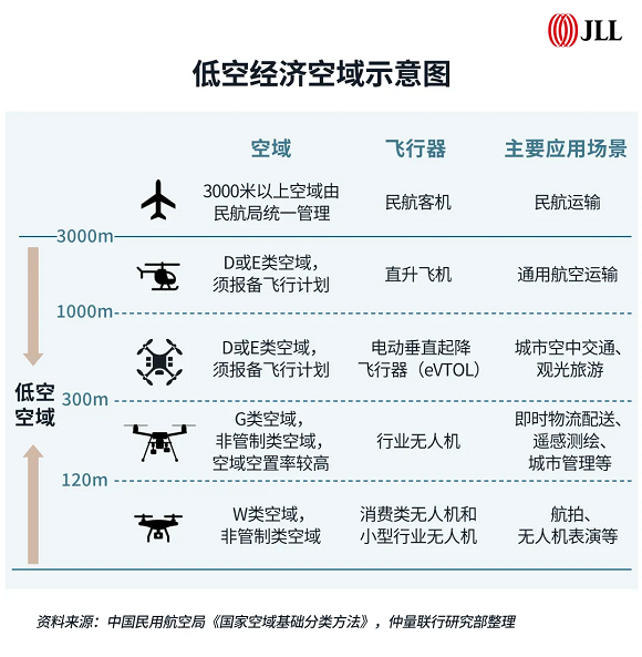 今年,低空經濟已首次寫入政府工作報告。從中央至全國各地正踴躍出臺相關產業政策,推動低空經濟加快發展。仲量聯行大中華區首席經濟學家兼研究部總監龐溟認為,低空經濟是新質生產力的代表性產業,其將實體經濟與數字經濟融合,通過開發低空空域資源這一新的要素,重新定義未來出行的形態,推動著城市空間利用方式的變革,已成為全球主要經濟體角逐的新賽道。