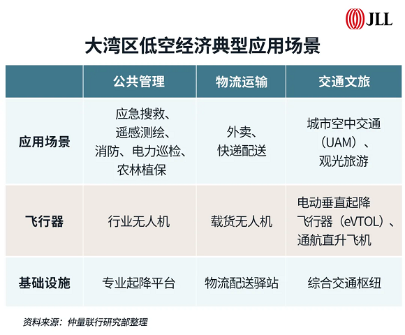 仲量聯行華南區研究部總監曾麗指出,粵港澳大灣區(以下簡稱“大灣區”)在低空經濟發展當中的產業基礎雄厚、政策支持有力,整體產業領先優勢明顯,代表著中國低空經濟發展的趨勢與潛力。低空經濟的崛起繁榮,離不開飛行器研發制造、政策監管規范、應用場景逐步拓展豐富的協同作用,從而實現各環節逐步形成閉環。