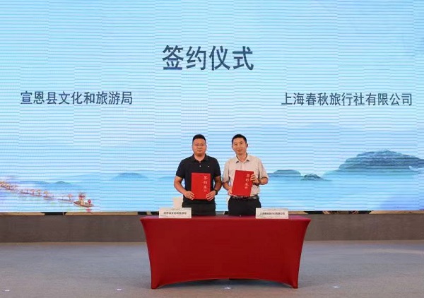 推介會上,宣恩文旅局與春秋旅游,宣恩旅行社代表與上海旅行社代表,簽訂合作協議,雙方在文商旅產業互導流量、互嵌資源、互植服務等方面,深入合作,提供更豐富更高質量的文旅供給,促進文旅消費增長,推動文旅高質量發展。