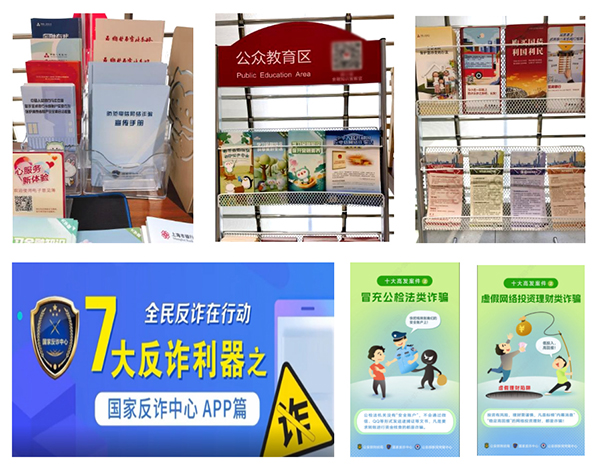 在網點廳堂這一金融服務的前沿陣地,分行充分利用了電子屏幕的滾動播放功能,持續展示公安部刑偵局精心制作的反詐視頻和電子海報。同時,廳堂內整齊擺放著各類反詐宣傳手冊和折頁,如“防范電信網絡詐騙宣傳手冊”等,以便客戶在辦理業務時能夠隨時取閱,增強反詐意識。據統計,僅6月至7月反詐宣傳已覆蓋約70萬人次。