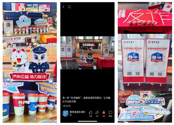 值得一提的是,招行上海分行還攜手上海公安聯合舉辦“反詐咖啡活動”。此次活動巧妙地將反洗錢反詐知識與海派咖啡文化相融合,利用備受歡迎的“咖啡杯”作為傳播媒介,進一步拓寬了反洗錢反詐宣傳的覆蓋面?;顒永谩懊ず小笔椒聪村X反詐標語,深入淺出地傳播金融安全知識,確保宣傳既專業又接地氣,充分發揮金融服務的正面作用?,F場還展示了紅藍撞色的反洗錢反詐警鷹系列文創,并推出咖啡周邊產品,以趣味方式普及反洗錢反詐信息,受到群眾的熱烈歡迎。同時,警銀雙方秉持“通力協作共護平安”以及“齊心公益協力反詐”的宗旨,舉辦黨建共建簽約儀式,深化合作,共同推動金融反洗錢反詐工作邁上新臺階。